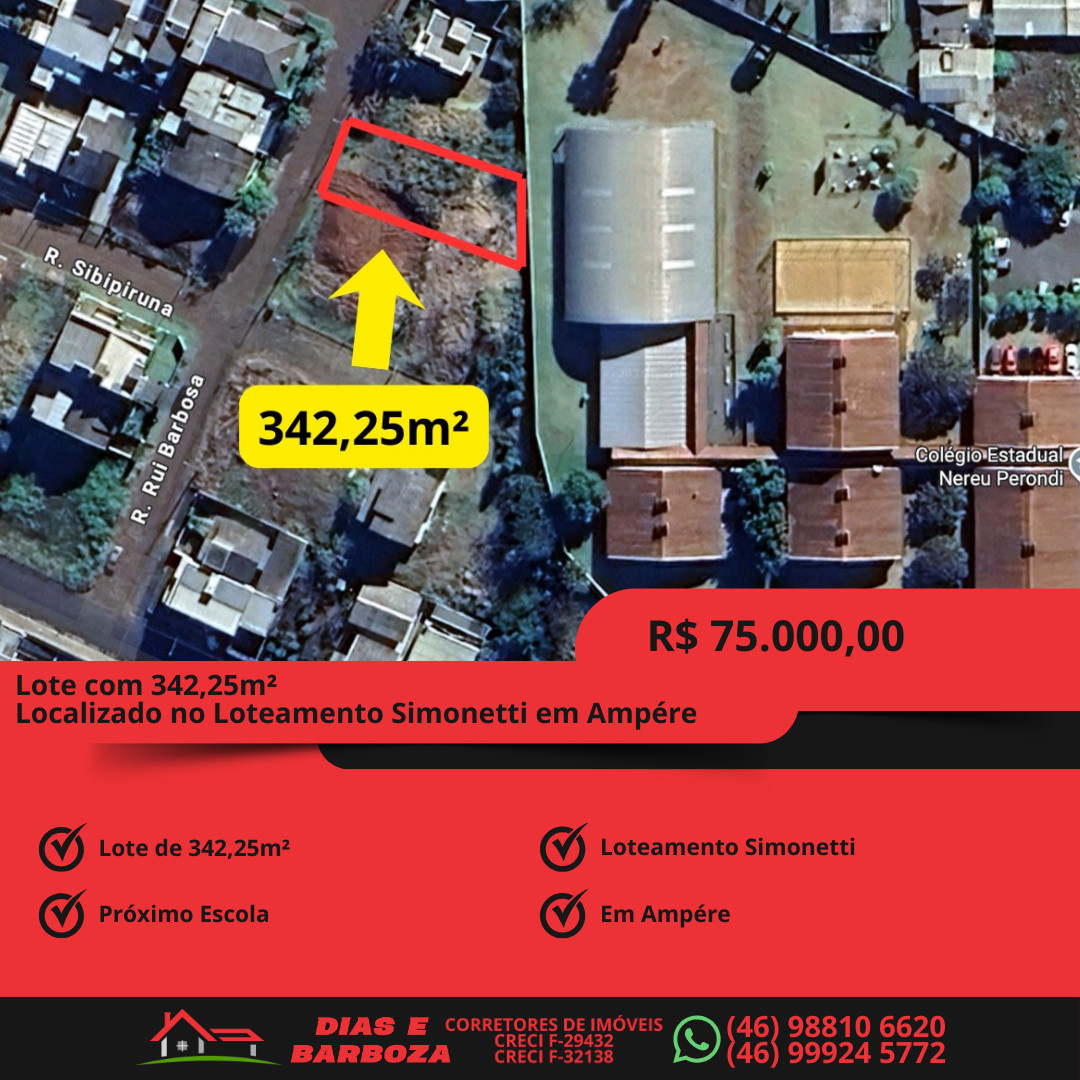 Lote de 342,25m², Localizado no loteamento Simonetti em Ampére.